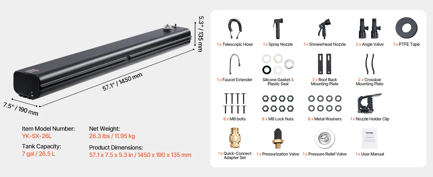 Táto odolná, vysokokapacitná hliníková nádrž na vodu so strešným radom minimalizuje dopĺňanie vody a podporuje sprchovanie, oplachovanie a čistenie. Slúži na viacero použití a poskytuje spoľahlivý zdroj vody pre jazdu v teréne, kempovanie, cestovanie a núdzové situácie.