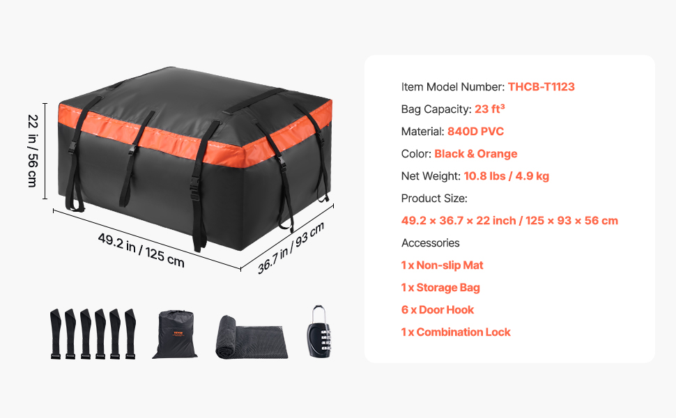 Zbaľte si viac, cestujte ďalej! Naša strešná batožina do auta s objemom 23 kubických stôp ponúka dostatok priestoru na uloženie potrebných vecí na cesty. Vyrobená z odolného nepremokavého materiálu 840D PVC chráni pred nepriaznivým počasím, zatiaľ čo kombinovaný zámok udrží vašu batožinu na cestách v bezpečí - ideálne na cesty.