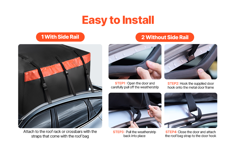 Jednoduchá inštalácia - bez ohľadu na to, či vaše vozidlo má alebo nemá strešný nosič, tento strešný nosič batožiny do auta možno bezpečne pripevniť pomocou popruhov alebo priložených háčikov na dvere, čo zaručuje rýchle a bezproblémové nastavenie.