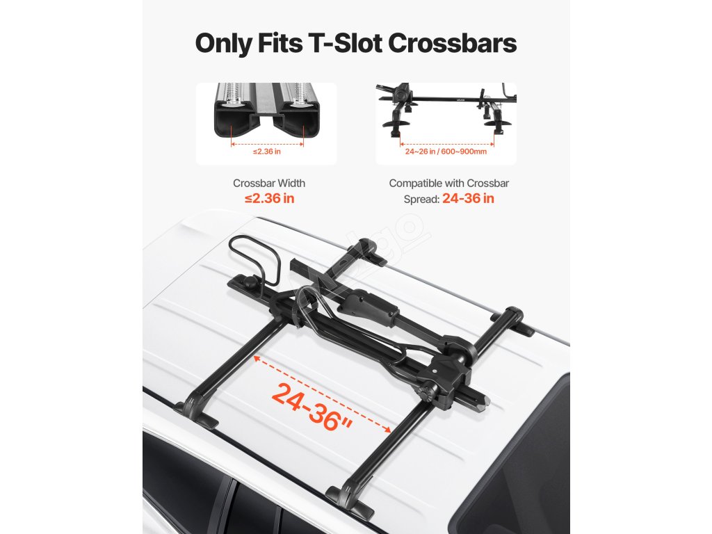 Tento strešný nosič bicyklov je kompatibilný len s priečnikmi, ktoré majú T-drážky. Pred kúpou si skontrolujte typ a šírku priečnika.