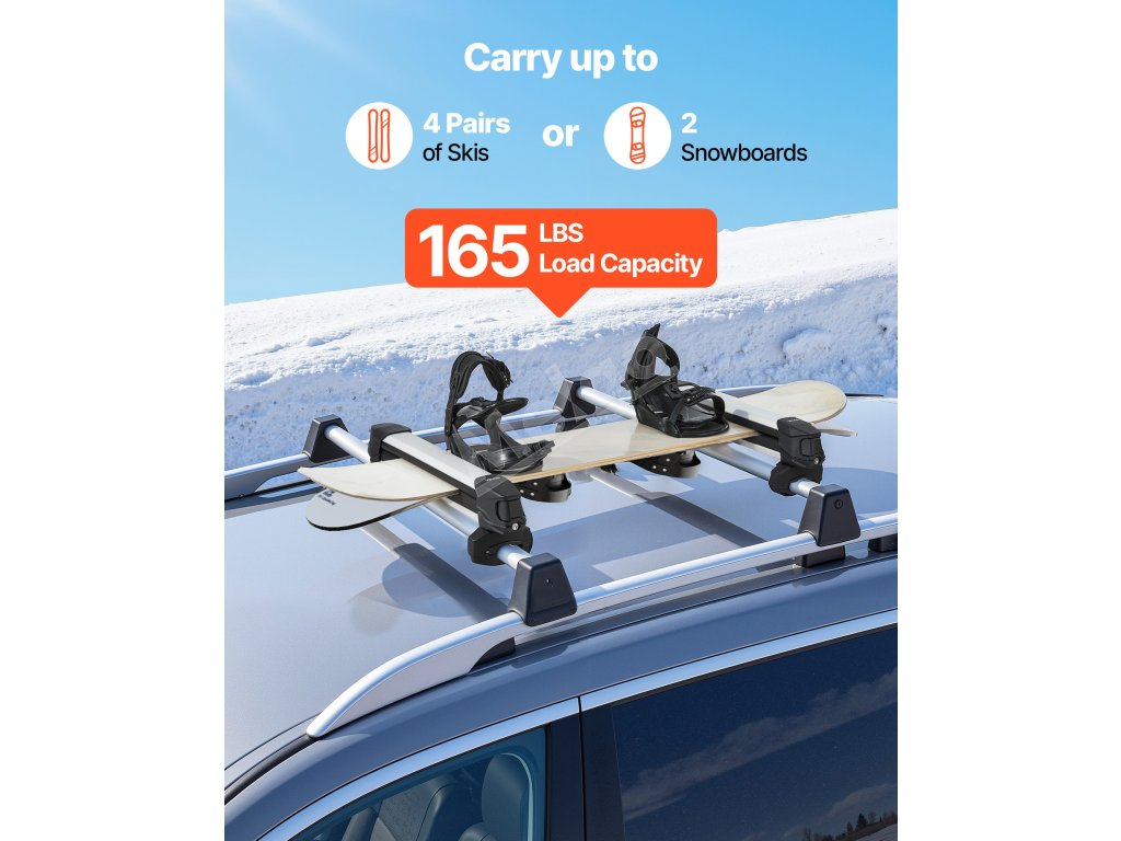Náš strešný nosič lyží a snowboardov obsahuje zámok proti krádeži na bezpečnú a pohodlnú prepravu. Mäkké gumové podložky odolávajú poškriabaniu a udržujú lyže pevne na mieste. Polovičný valcový dizajn znižuje odpor vetra a hluk, zatiaľ čo odolný rám z hliníkovej zliatiny zaručuje trvalú spoľahlivosť.