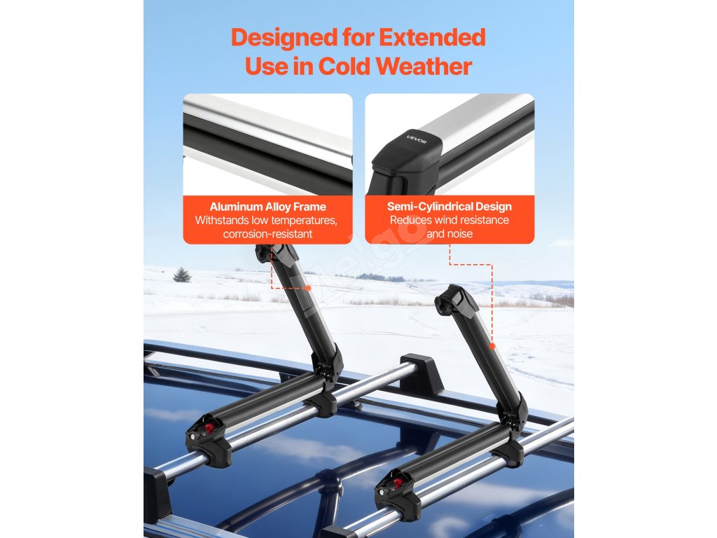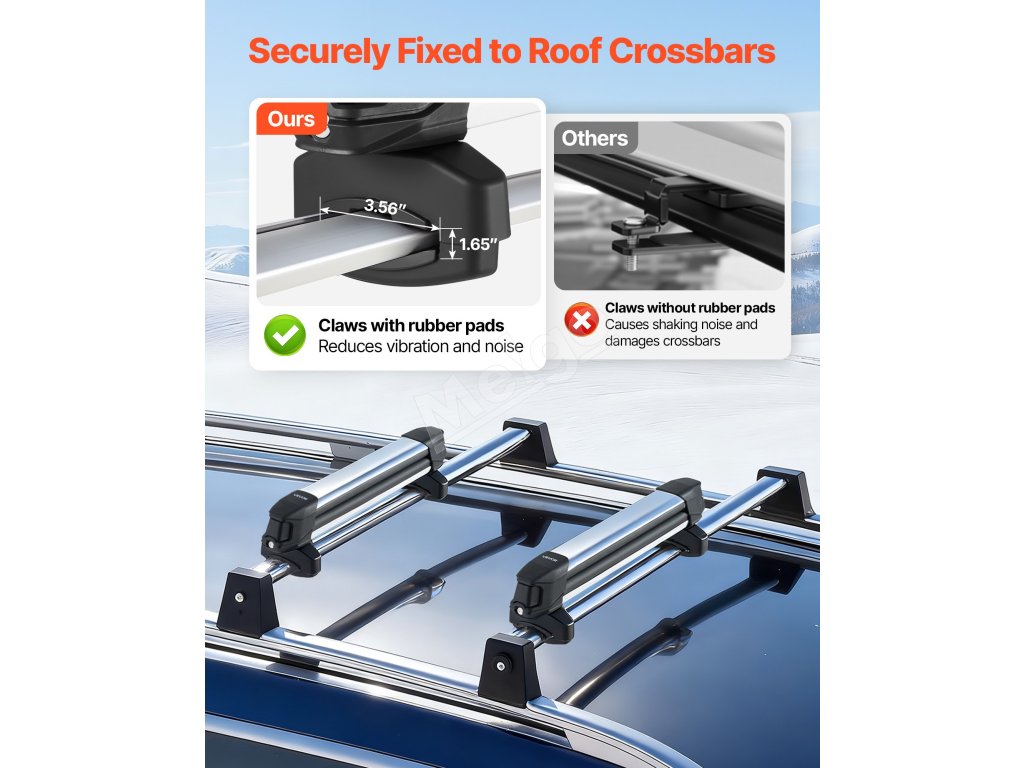 Tento nosič na snowboardy je vyrobený z hliníkovej zliatiny odolnej proti korózii a korózii, takže odolá aj drsným zimným podmienkam. Pevné gumové podložky proti poškriabaniu pevne držia lyže, odolávajú poškodeniu počas prepravy a zaisťujú bezpečné a pohodlné cestovanie.