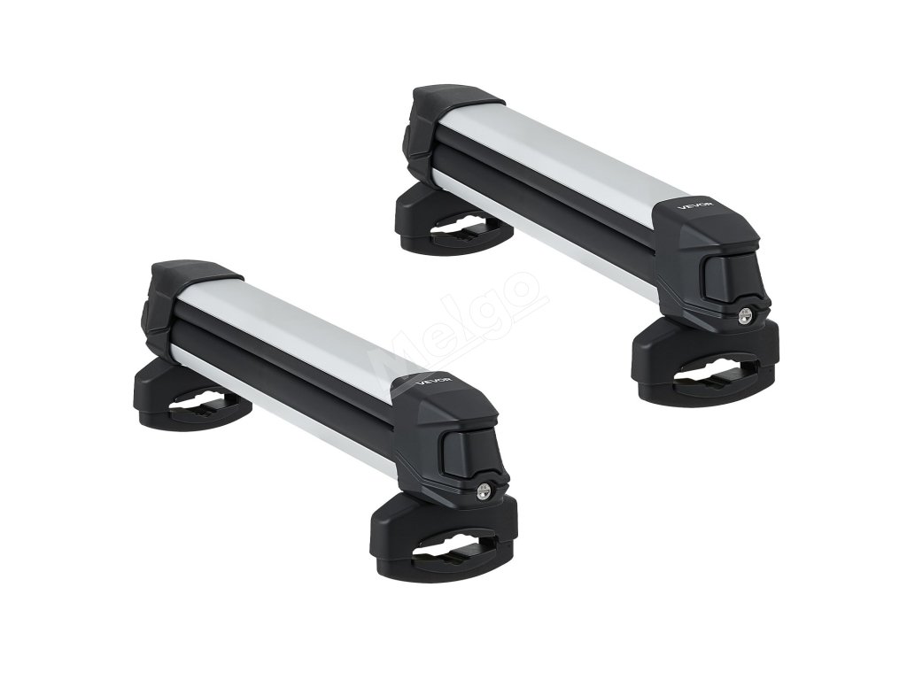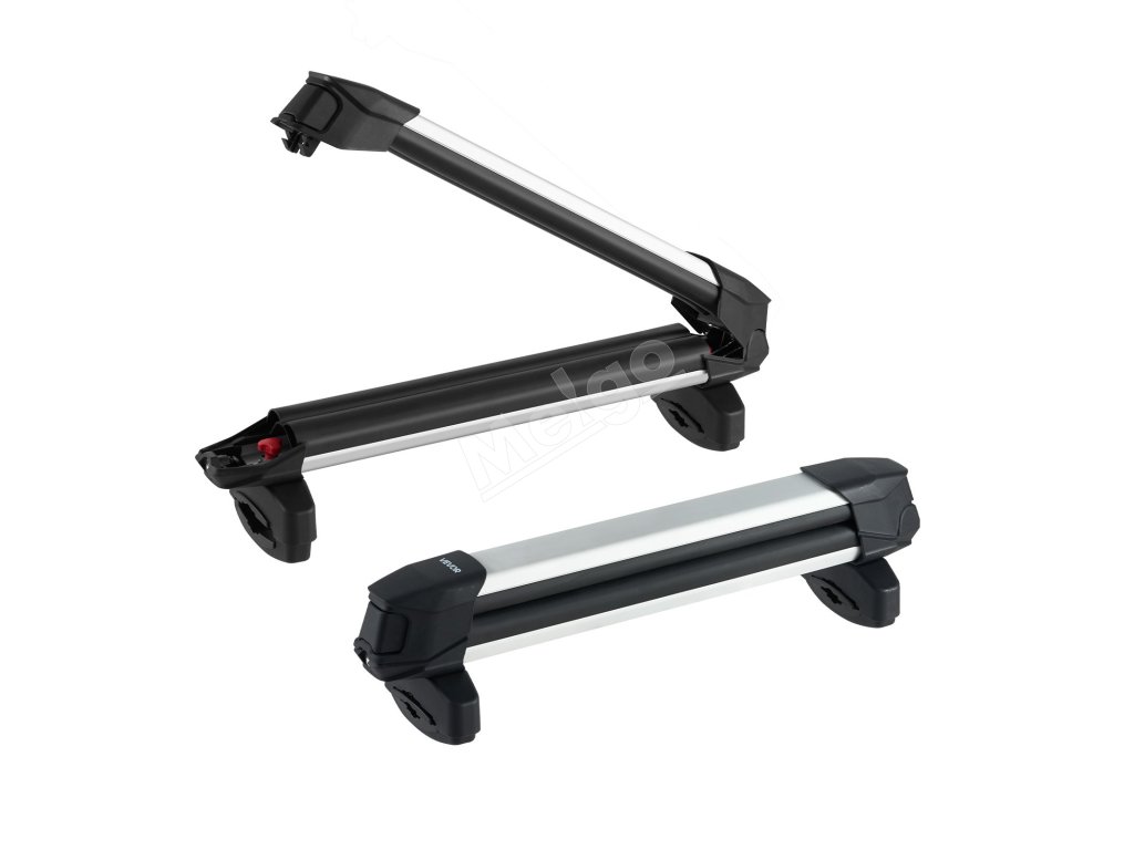 Tento univerzálny strešný nosič na lyže podporuje rýchlu inštaláciu na priečne tyče vášho vozidla bez použitia náradia. Jednoduché a bezproblémové nastavenie zaručuje pevné a spoľahlivé uchytenie.