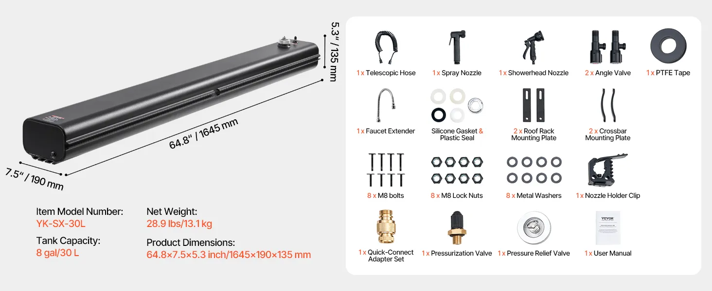 Táto odolná, vysokokapacitná hliníková nádrž na vodu so strešným radom minimalizuje dopĺňanie vody a podporuje sprchovanie, oplachovanie a čistenie. Slúži na viacero použití a poskytuje spoľahlivý zdroj vody pre jazdu v teréne, kempovanie, cestovanie a núdzové situácie.