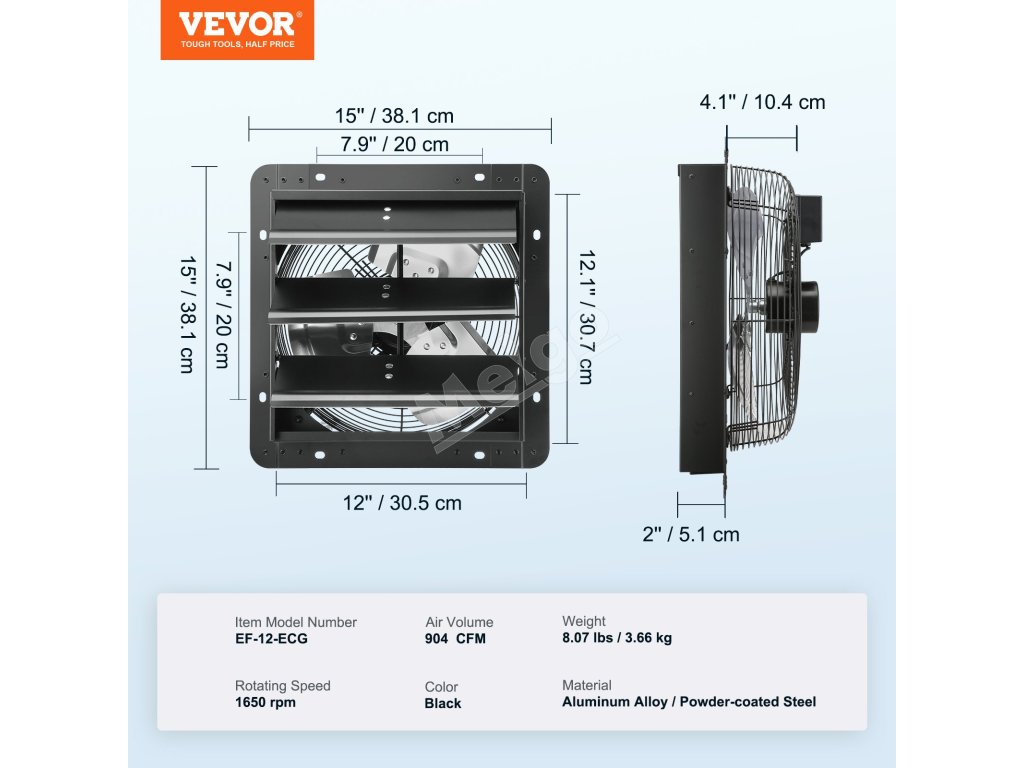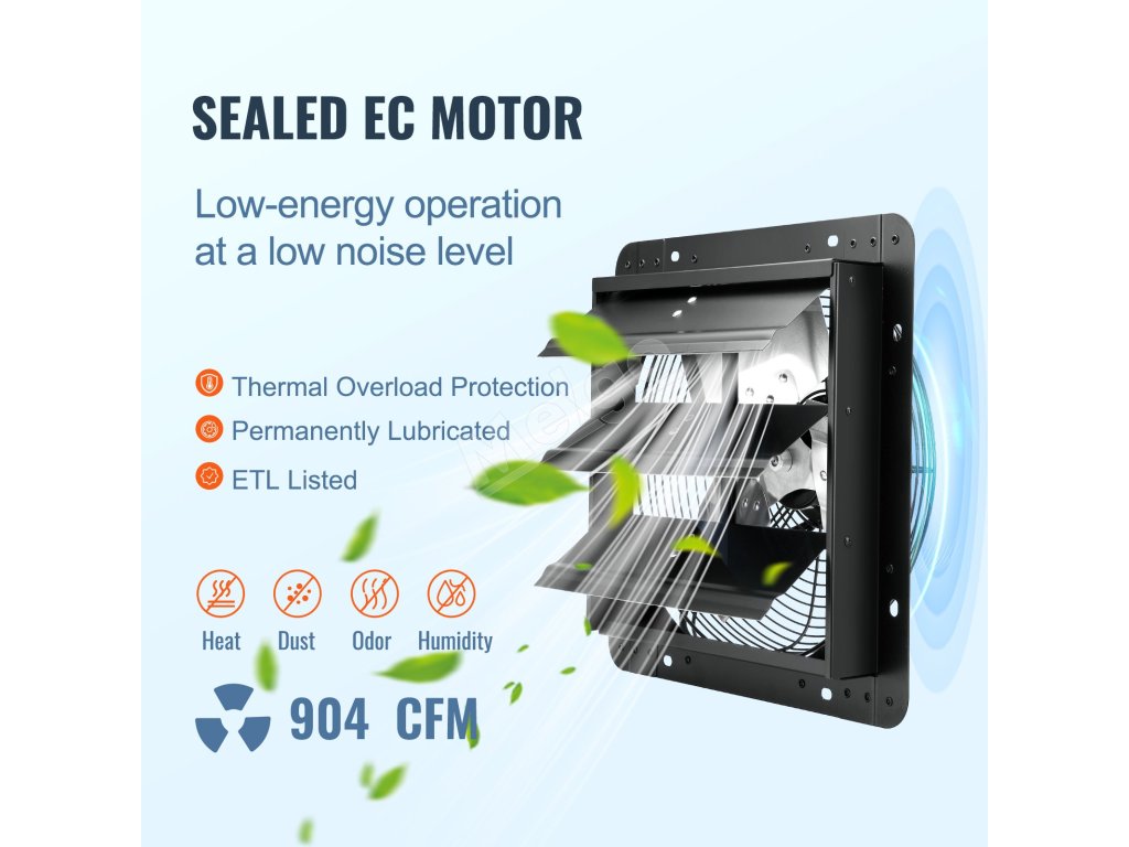 Odťahový ventilátor so žalúziou 305 mm 904 CFM EC-motor regulácia T/V