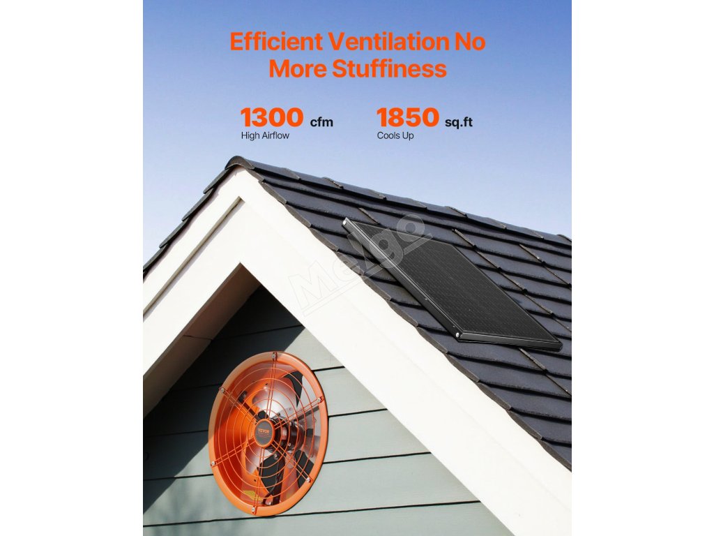 Tento štítový ventilátor vybavený vysokorýchlostným motorom poskytuje silný prúd vzduchu na rýchle vyhnanie horúceho vzduchu a zníženie teploty v podkroví.