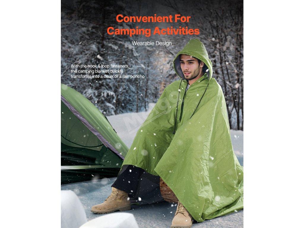 Premeňte svoj zážitok z kempovania s touto kempingovou dekou, ktorá sa ľahko zmení na útulný plášť alebo pončo do dažďa. Je vyrobená z mäkkého polyesterového rúna 220GSM a ponúka vynikajúce vetruvzdorné a nepremokavé vlastnosti. Vďaka rozmerom 79" x 59" je tiež ľahká a ľahko sa skladuje.