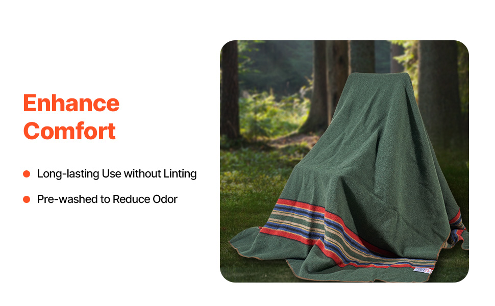Táto vlnená outdoorová prikrývka je skonštruovaná tak, aby odolala prírodným živlom, a má zosilnené šitie na okrajoch s pevnosťou v ťahu vyššou ako 200 N. Či už kempujete, chodíte na túry alebo skúmate okolie, je to spoľahlivý spoločník, ktorý odolá opotrebovaniu.