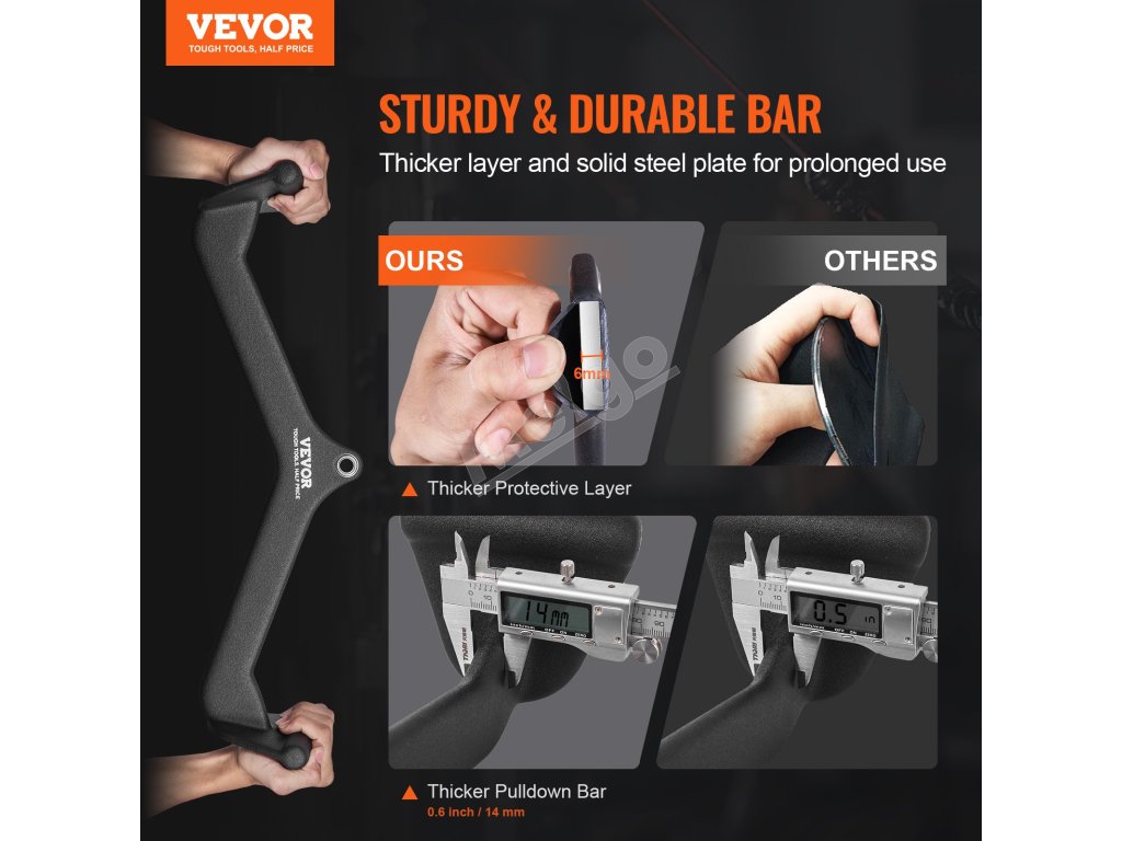 Vďaka konštrukcii s hrubou gumovou vrstvou a pevnou oceľovou doskou vydrží náš nástavec na lat pulldown aj tie najintenzívnejšie tréningy bez toho, aby sa ohol alebo praskol.