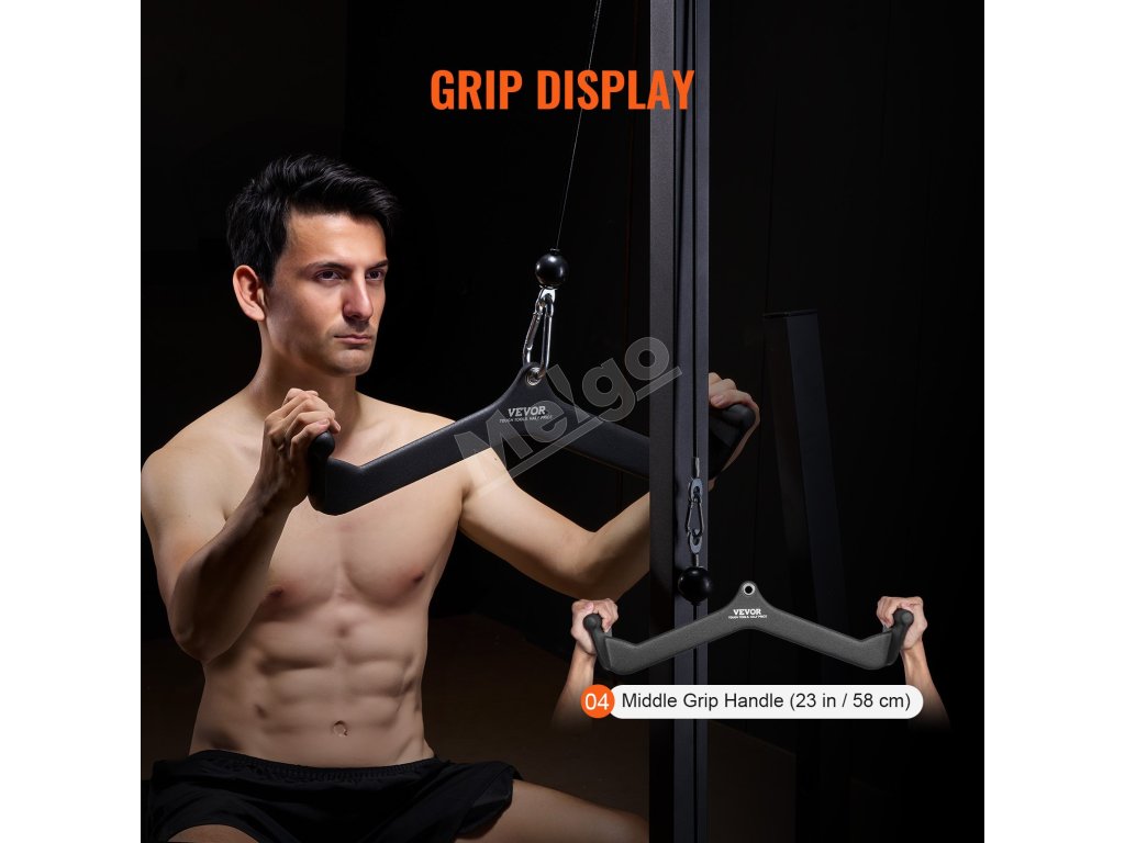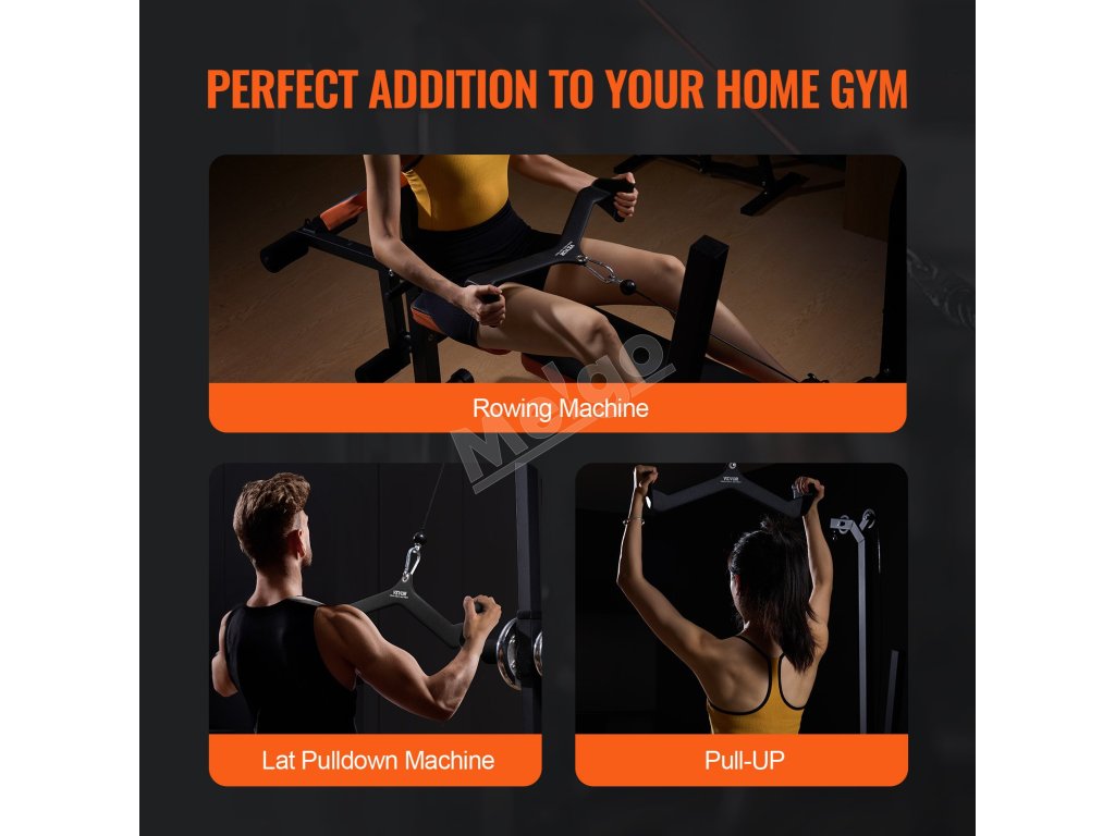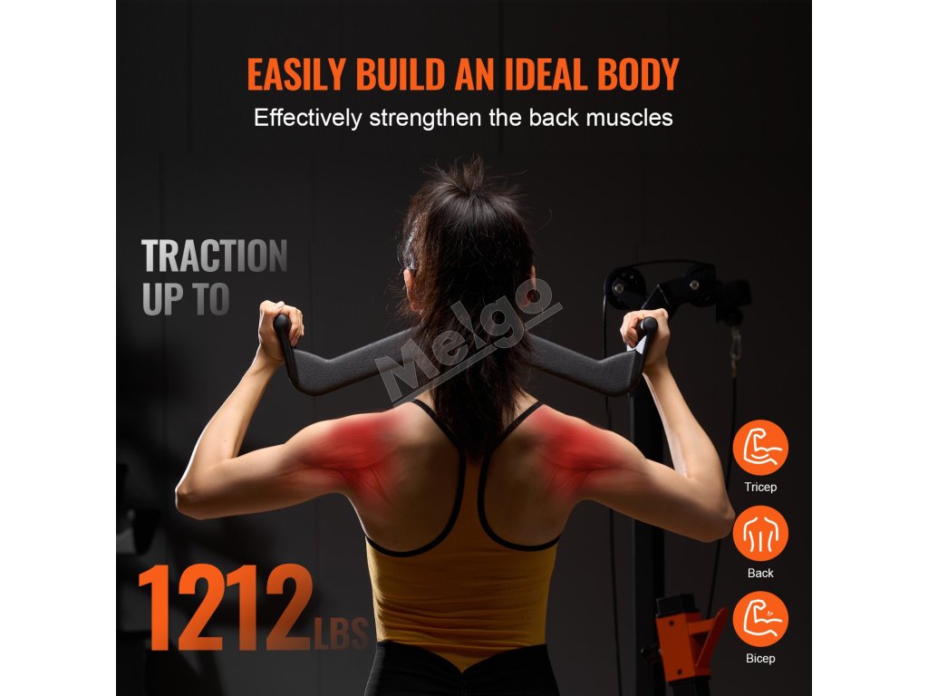 Náš nástavec na lanový stroj, ktorý je navrhnutý tak, aby sa účinne zameral na chrbtové svaly, tricepsy a bicepsy, podporuje ťažnú silu až do 1212 lbs/550 kg.