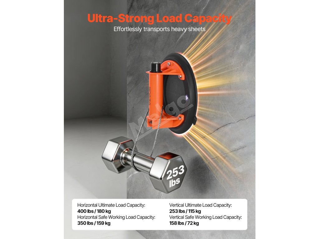 Tento zdvihák s prísavkou poskytuje pevný úchop vďaka vysokému podtlaku. Podložka zostáva na mieste aj pri miernych vibráciách alebo malých uhloch, takže ťažké panely zostávajú stabilné a ich manipulácia je bezpečnejšia.