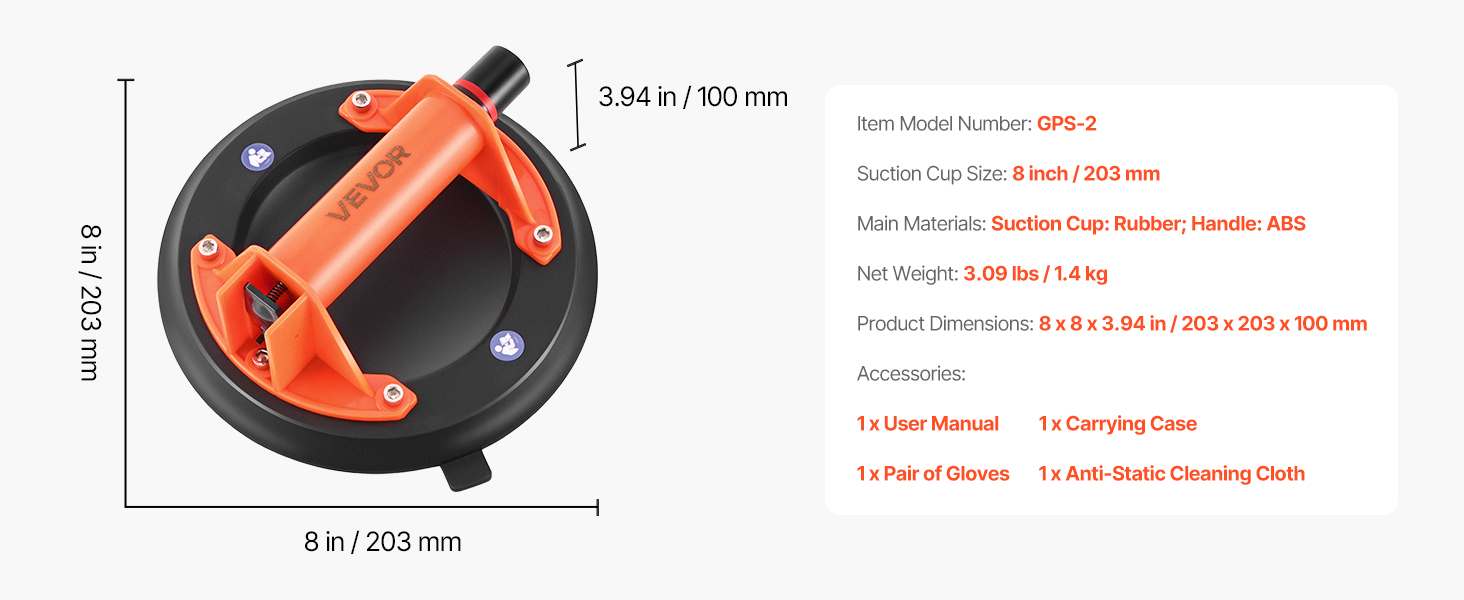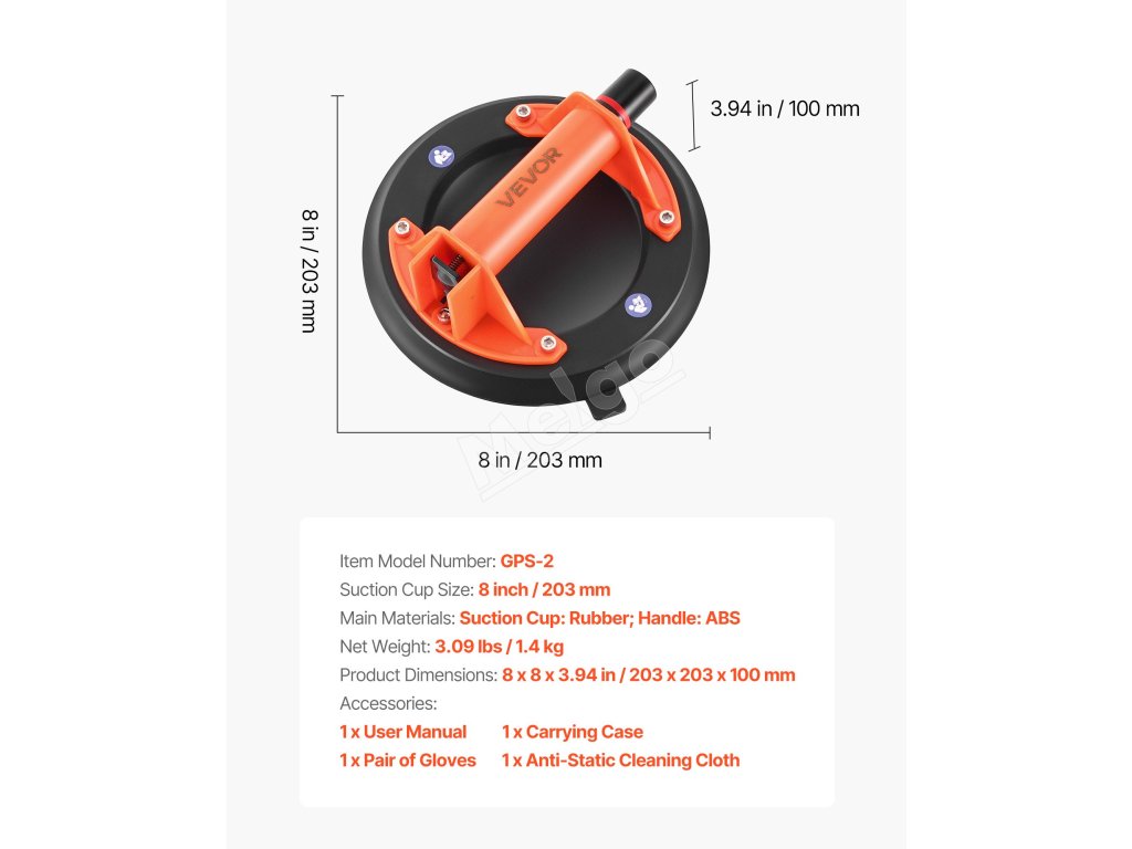 | Veľkosť prísavky | 8 palcov / 203 mm |