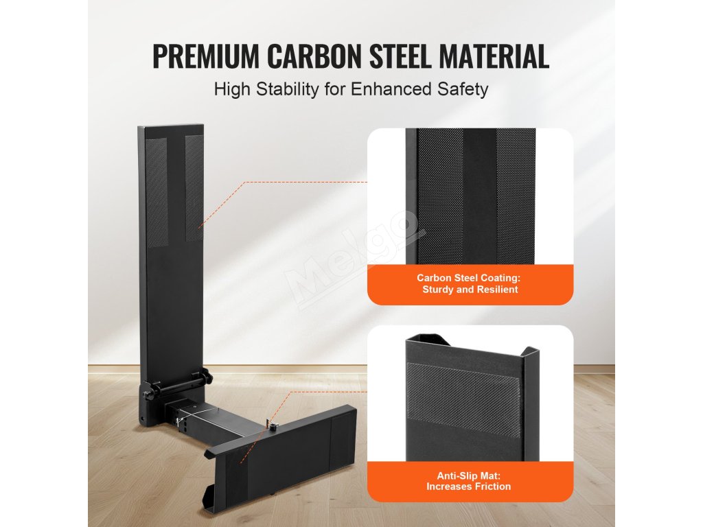 Protišmykové gumové nožičky zlepšujú kontakt so zemou pre stabilitu. Široká oporná plocha sa prispôsobí rôznym typom rebríkov. Vyrobené z vysokokvalitnej uhlíkovej ocele pre odolnosť proti korózii a dlhodobú životnosť, každý detail spolupracuje na zaistení bezpečnosti a stability.