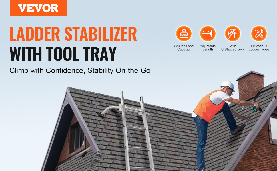 Náš stabilizátor rebríka, ktorý je určený na viacero použití, uľahčuje a zabezpečuje výškové práce. Ideálny na čistenie striech, vonkajšie úlohy, renovácie v interiéri a exteriérové dekorácie. Poznámka: Neodporúča sa na strechy s vetranými hrebeňmi.