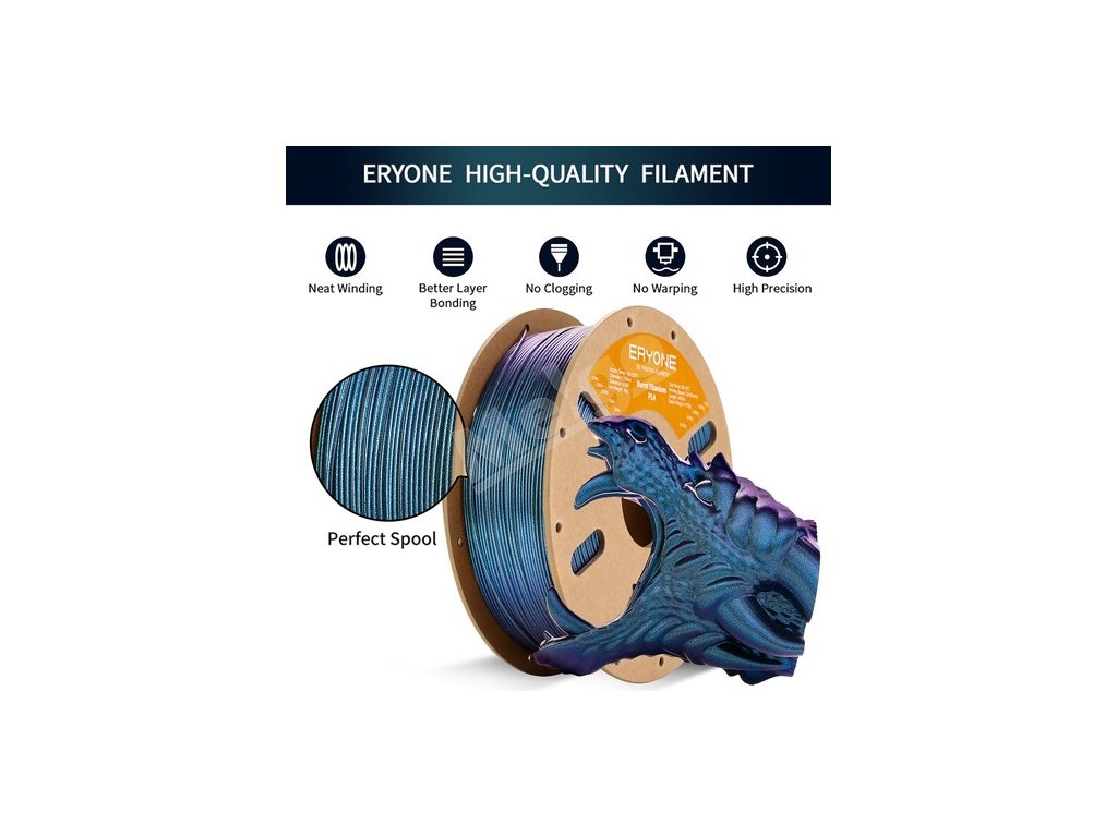 ERYONE si na výrobu filamentov vyberá materiál PLA šetrný k životnému prostrediu a zabezpečuje kvalitu vašich 3D výtlačkov. Tento filament PLA Burnt Titanium je ideálny na použitie v interiéri, je ideálny na vytváranie zložitých a detailných výtlačkov, vďaka čomu je ideálny na umelecké a dekoratívne predmety. Počas procesu tlače vyžaruje veľmi málo zápachu.