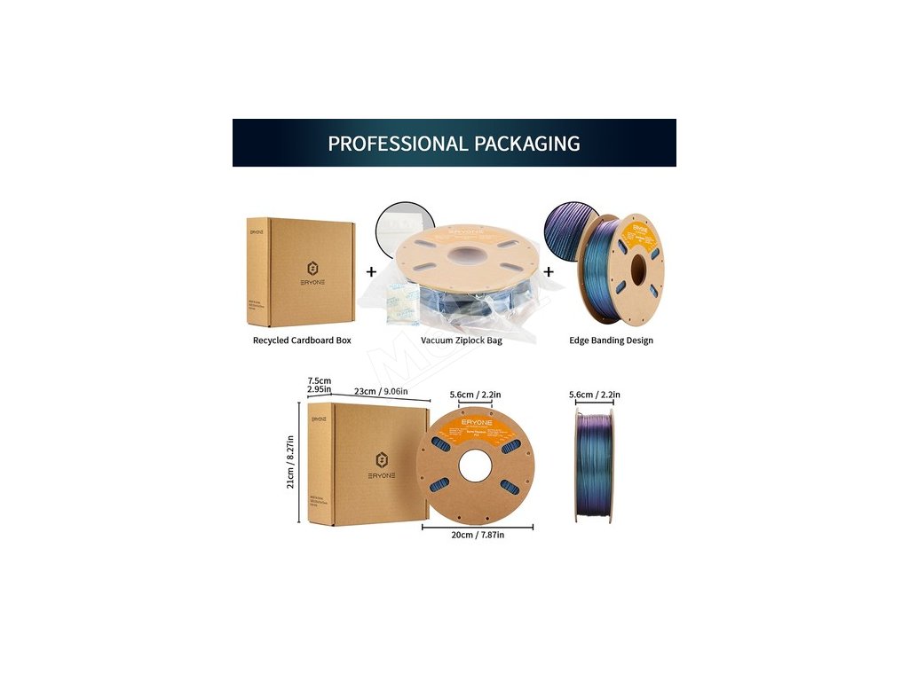 Vynikajúco usporiadané, opakovane použiteľné vákuovo uzavreté balenie, ktoré udržiava suché a odolné voči prachu. Nepoužité vlákna PLA skladujte na chladnom, suchom a bezprašnom mieste, aby ste si zabezpečili ich ďalšie dobré použitie.