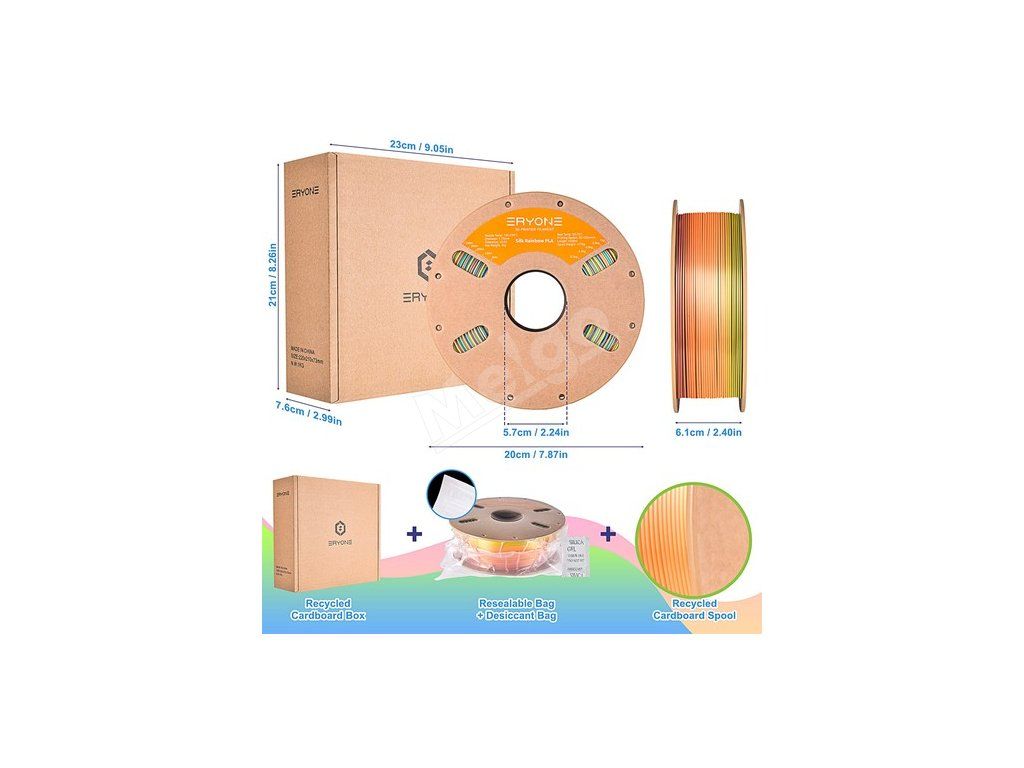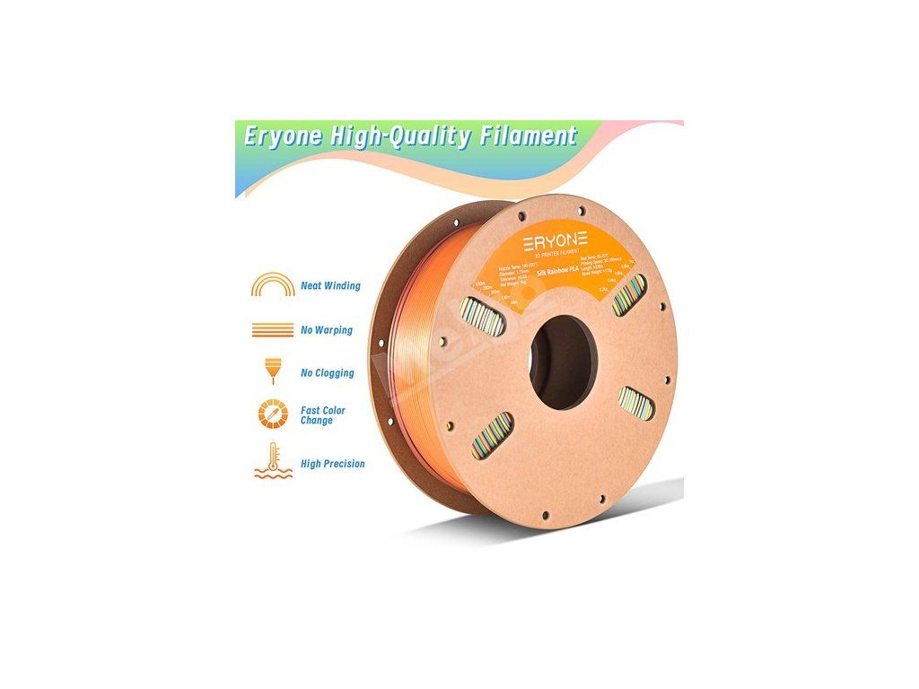 | Všeobecné | Značka: Typ: ERYONE Typ: ERYONE Typ: ERYONE Typ: ERYONE Model: YYRRONE, s.r.o: Silk Rainbow PLA Farba: Dúha nad horami |