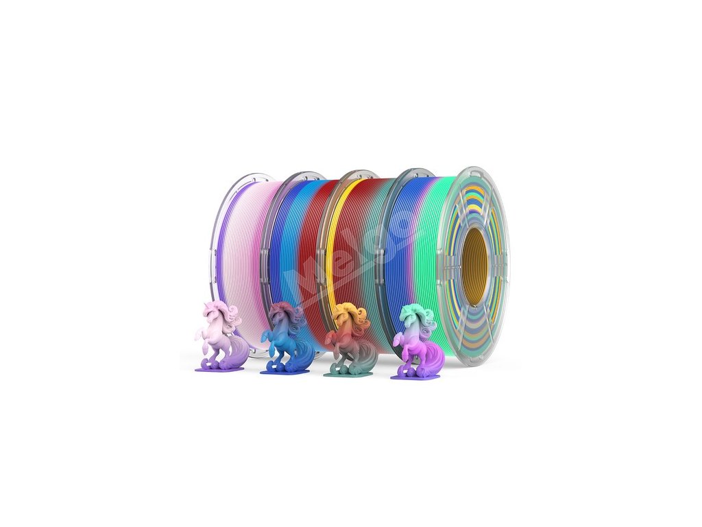 Dúhový filament Mecpow PLA Rainbow prináša jedinečné efekty zmeny farieb, čím odomyká neobmedzený kreatívny potenciál vašich projektov. Vytvára žiarivé dúhové gradienty, čím zvyšuje realizmus a vizuálnu príťažlivosť vašich 3D tlačených diel. S vláknom PLA Rainbow môžete bez námahy dosiahnuť dynamické farebné prechody a premeniť svoje projekty na pôsobivé, realistické výtvory.