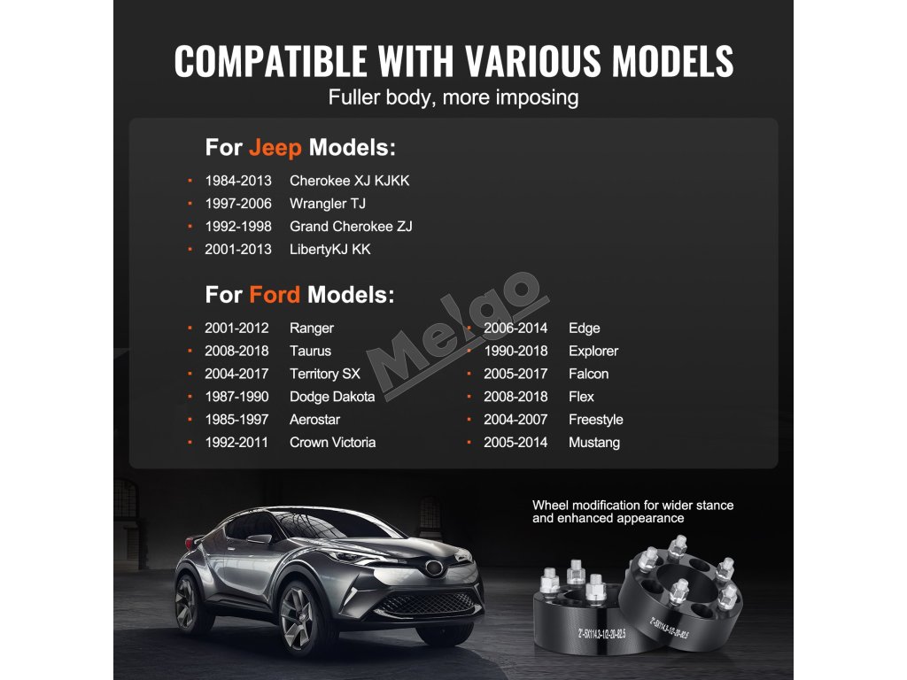 Tieto dištančné podložky sú vhodné pre širokú škálu modelov vozidiel. Pred nákupom si skontrolujte kompatibilné modely. Ak máte akékoľvek otázky týkajúce sa našich dištančných podložiek pod kolesá, neváhajte nás kontaktovať a my vám radi pomôžeme.