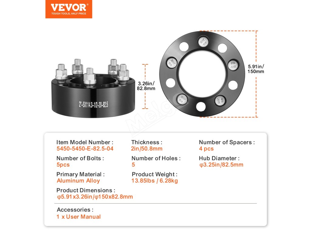 Podložky pod kolesá 2" 5×4.5" 5-dierové 82.5 mm 1/2"-20 4 ks