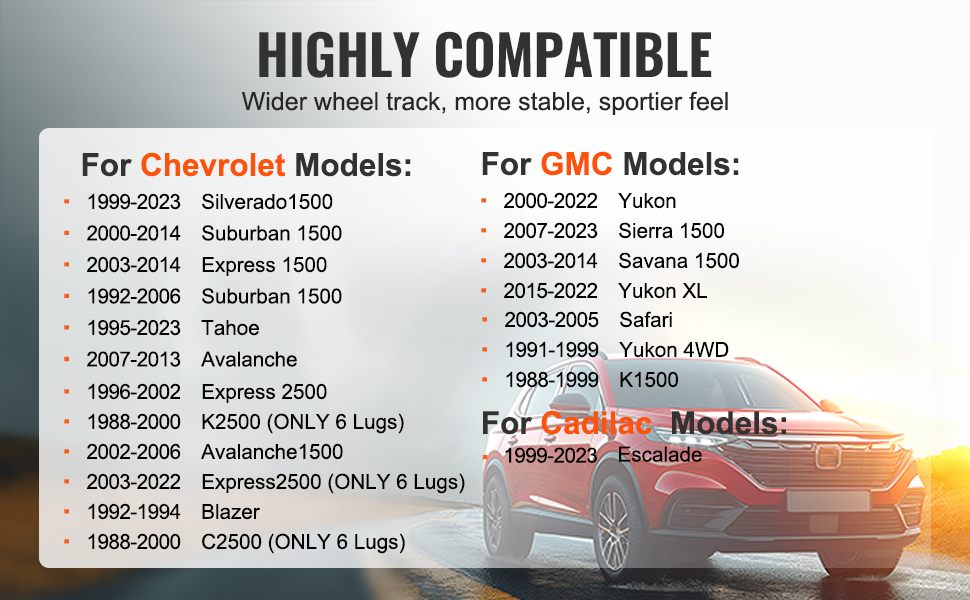 Tieto adaptéry kolies sa používajú na rozšírenie rozchodu kolies, čím sa zvyšuje stabilita vozidla a poskytuje sa viac priestoru vo vnútri kolesa pre nové zavesenie, brzdy a ďalšie príslušenstvo. Dodávajú vozidlu dynamickejší a agresívnejší vzhľad.