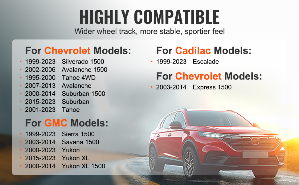 Tieto adaptéry kolies sa používajú na rozšírenie rozchodu kolies, čím sa zvyšuje stabilita vozidla a poskytuje sa viac priestoru vo vnútri kolesa pre nové zavesenie, brzdy a ďalšie príslušenstvo. Dodávajú vozidlu dynamickejší a agresívnejší vzhľad.