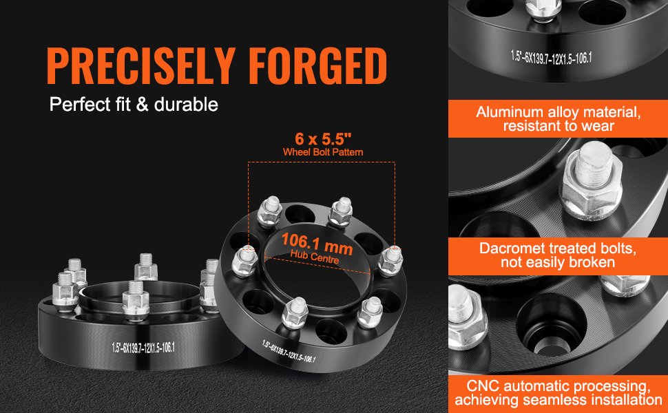 Rozpery kolies 1.5" 6×5.5" 6 dier 106.1 mm M12×1.5 4 ks čierne