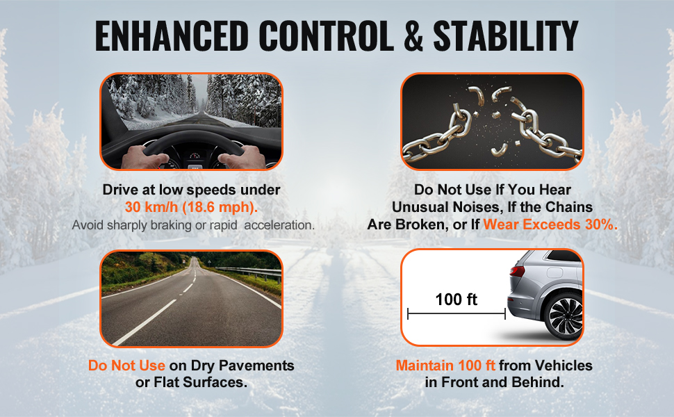 Naše snehové reťaze sú určené pre osobné vozidlá, vozidlá SUV a nákladné vozidlá. Premerajte si šírku svojich pneumatík, aby ste sa uistili o správnom nasadení a zaistili, že snehové reťaze sú čo najtesnejšie pre bezpečnosť a trvanlivosť.