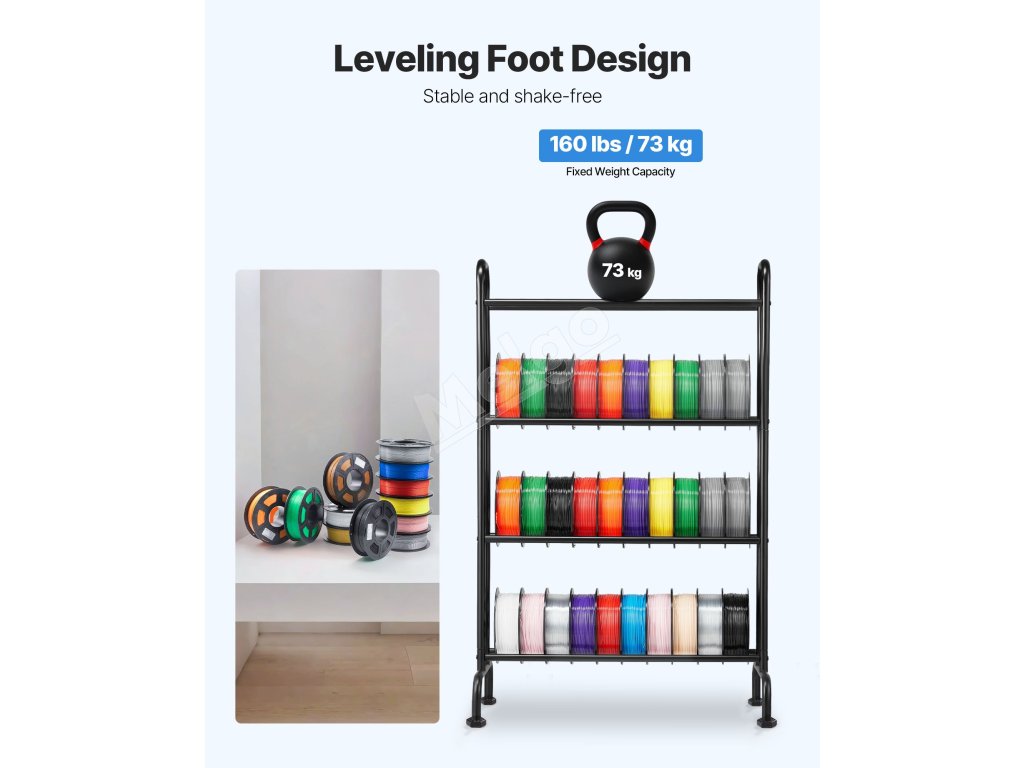 Tento stojan na skladovanie filamentu je vyrobený z odolného materiálu, navrhnutý tak, aby šetril miesto, udržal veľké zaťaženie a ľahko sa inštaloval. Je ideálny na udržiavanie poriadku, organizácie a neporiadku vo vašom priestore!