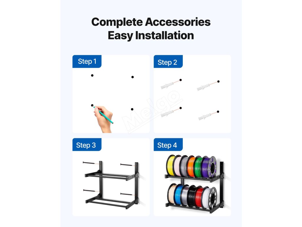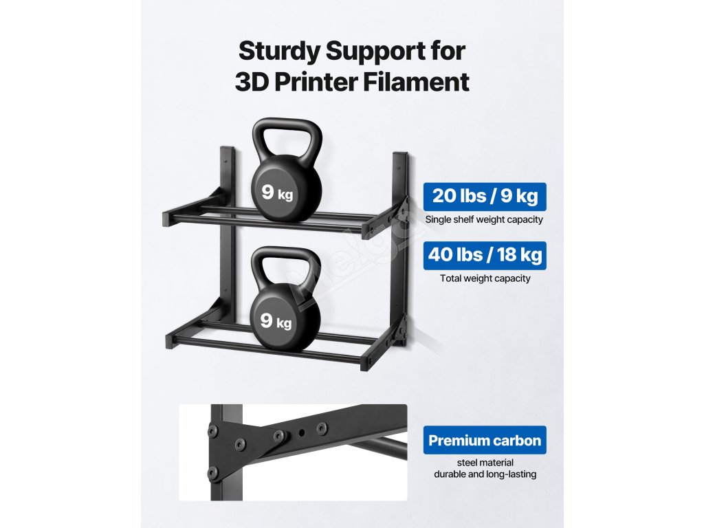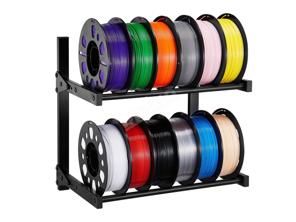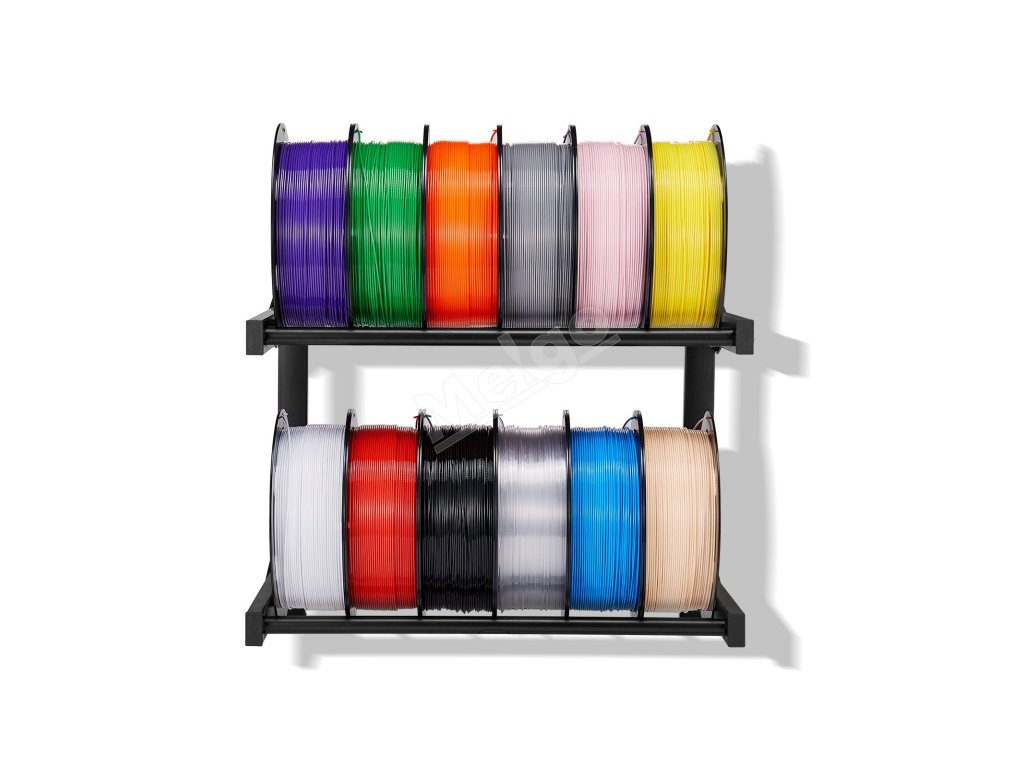 Tento stojan na ukladanie filamentov je vyrobený z uhlíkovej ocele s jemnou práškovou povrchovou úpravou a vyznačuje sa bezpečnostným dizajnom s hladkými hranami. Je pevný, odolný a skonštruovaný tak, aby vydržal dlhodobé používanie.