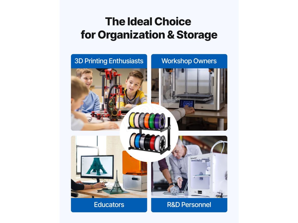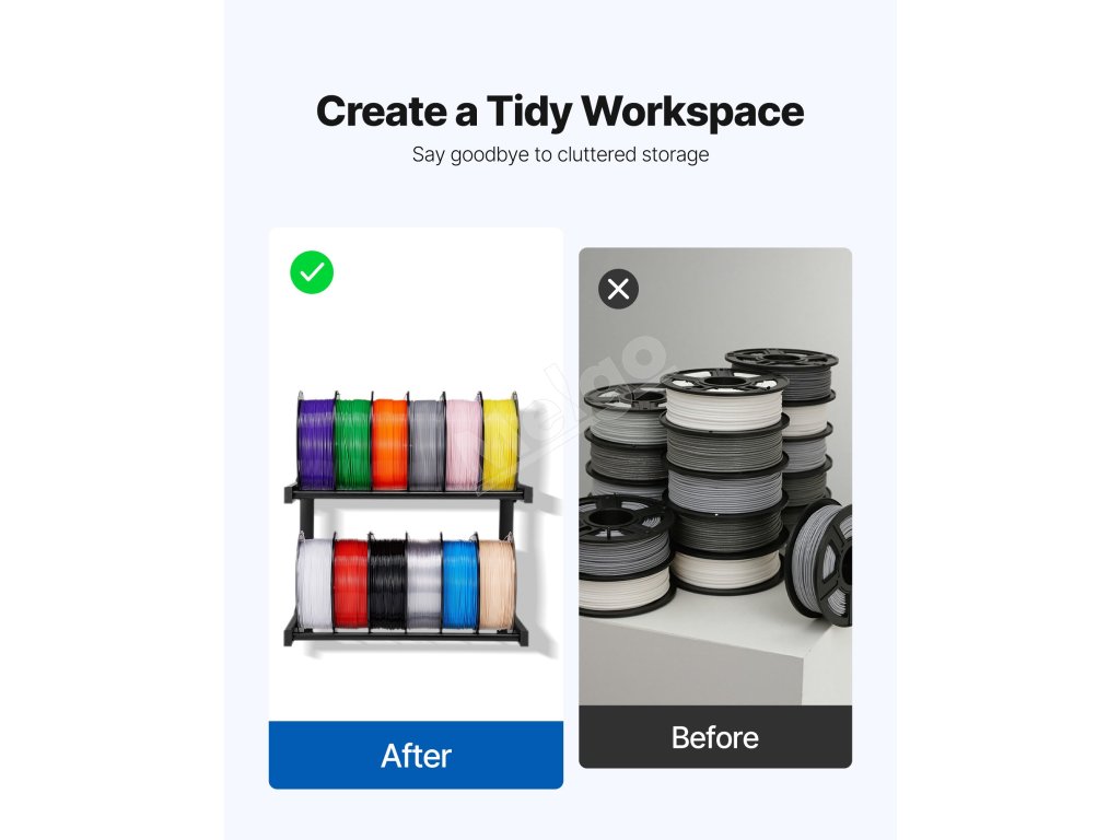Ideálne pre akýkoľvek priestor! Či už ide o dielňu, kanceláriu alebo tlačiareň, tento držiak na cievky filamentov sa prispôsobí každému prostrediu. Je univerzálny, ľahko a prakticky spĺňa potreby skladovania v rôznych prostrediach.