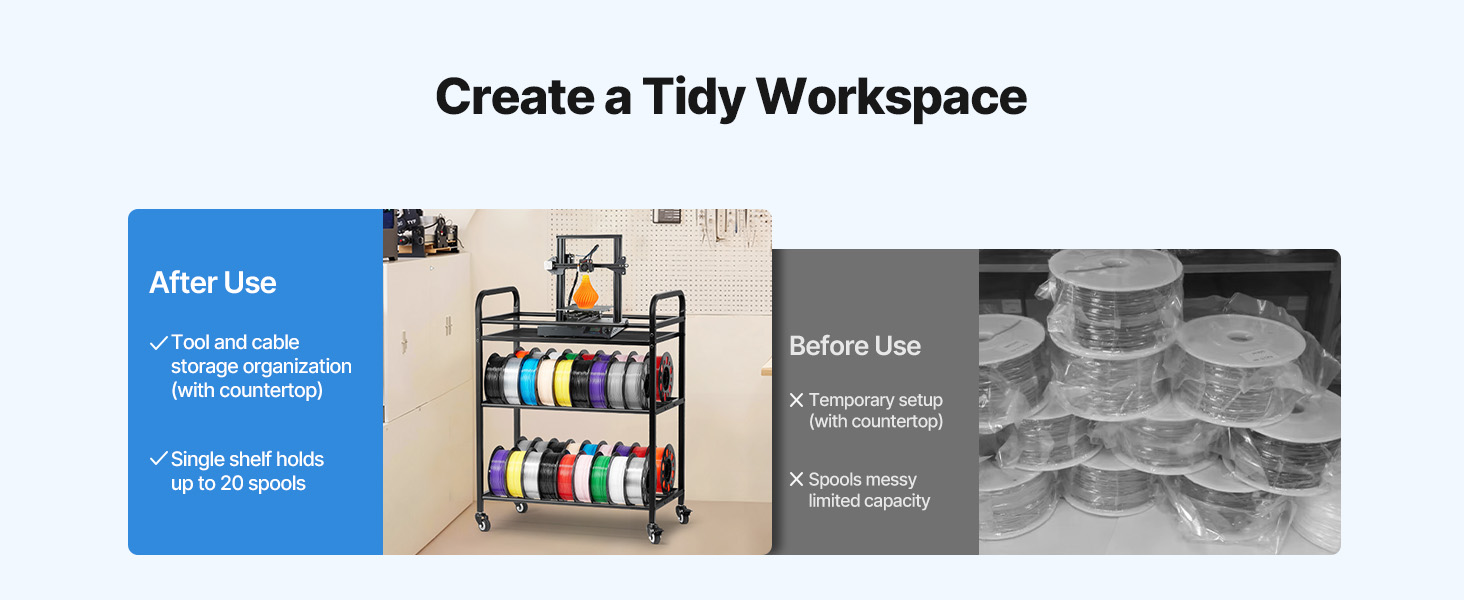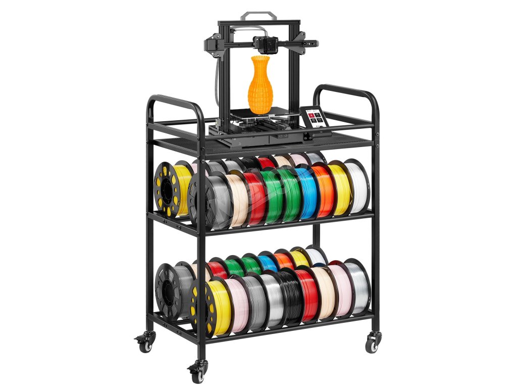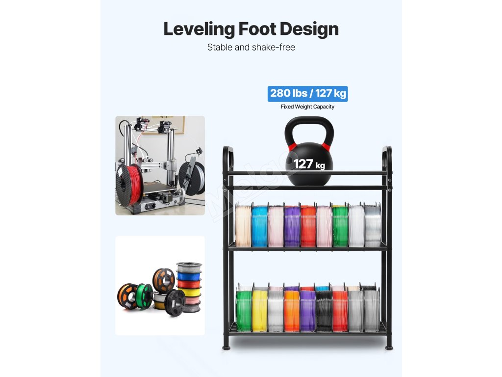 Tento regál na ukladanie filamentu, ktorý je vybavený 3-vrstvovými dvojradovými policami, pojme až 20 cievok na jednu vrstvu! Je ideálna na prehľadné uloženie nástrojov a cievok, čím sa vytvorí uprataný pracovný priestor, vďaka ktorému bude vaša práca efektívnejšia a príjemnejšia!
