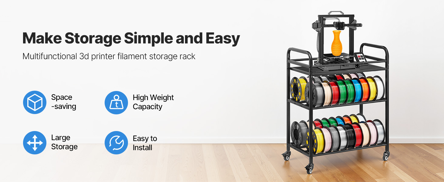 Ideálny pre akýkoľvek priestor! Či už ide o dielňu, kanceláriu alebo tlačiareň, tento stojan na 3D tlač sa prispôsobí akémukoľvek prostrediu. Je všestranný, ľahko a prakticky spĺňa potreby skladovania v rôznych prostrediach.
