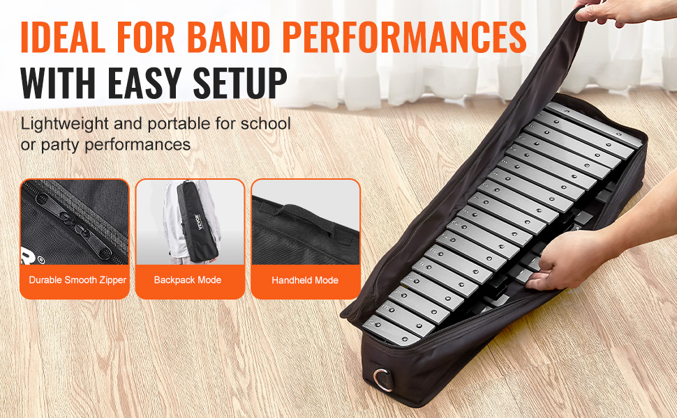 Je vybavená dvojúčelovou taškou na prenášanie, takže ju možno prenášať v ruke alebo na chrbte. Zvonkohra je vyrobená zo zhrubnutej tkaniny 1200D Oxford, je pevná, odolná, nepremokavá, priedušná, poskytuje lepšiu ochranu vášho milovaného nástroja, vhodná na prenášanie medzi domovom, školou alebo vonku.