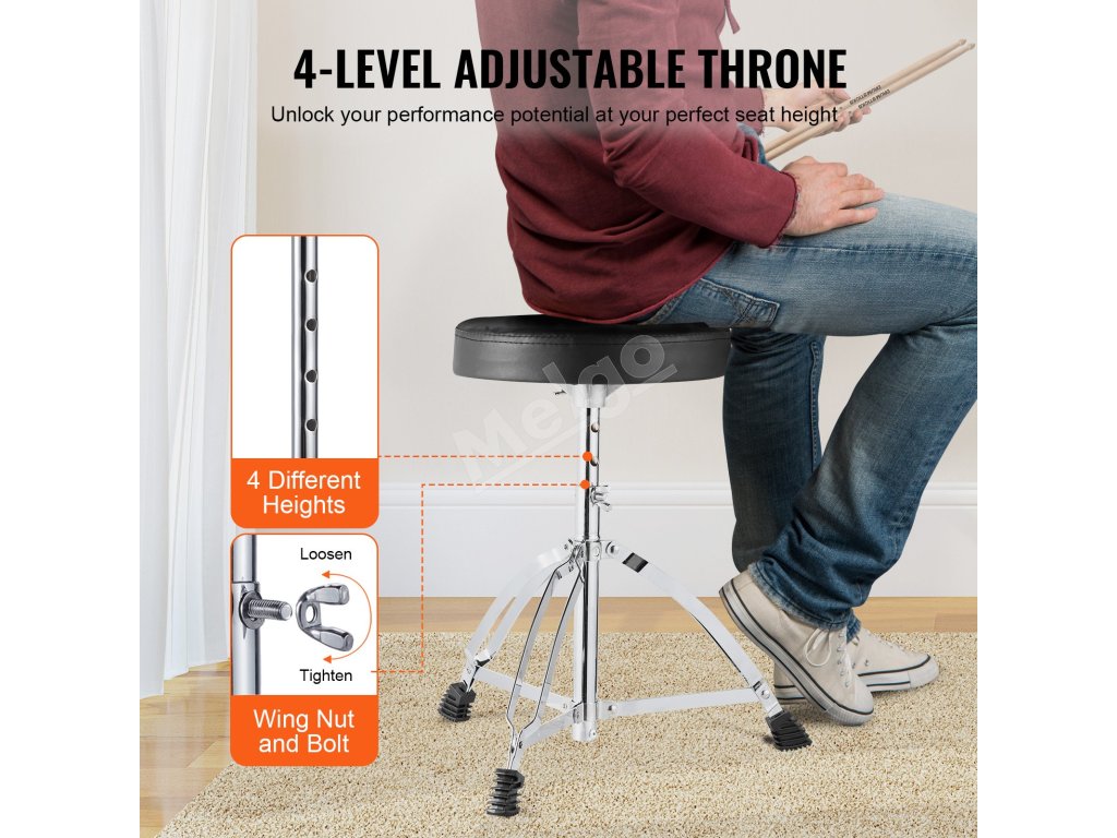 Zhrubnutý oceľový podporný rám zaisťuje pevnú stabilitu, čím sa minimalizuje nežiaduce kolísanie alebo nestabilita počas hry. Vďaka tejto pevnej a spoľahlivej opore sa môžete plne sústrediť na svoje bubnovanie a uvoľniť svoju kreativitu bez rozptyľovania.