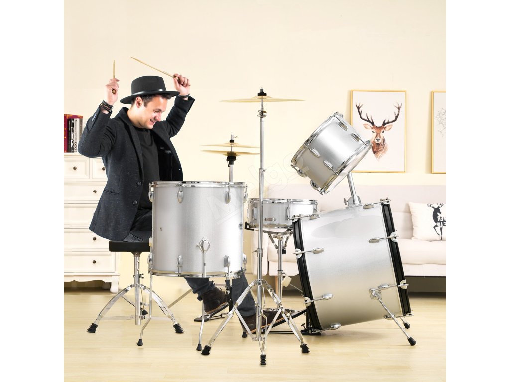 Naša bicia súprava pre dospelých obsahuje 10'' tom tom, 12'' tom tom, 14'' snare bubon, 22'' basový bubon a 16'' floor tom. Vďaka topoľovému bubnovému plášťu a PET bubnovej hlave poskytujú naše bubny čistý a dynamický zvuk. Pozdvihnite svoju bubenícku cestu ešte dnes!