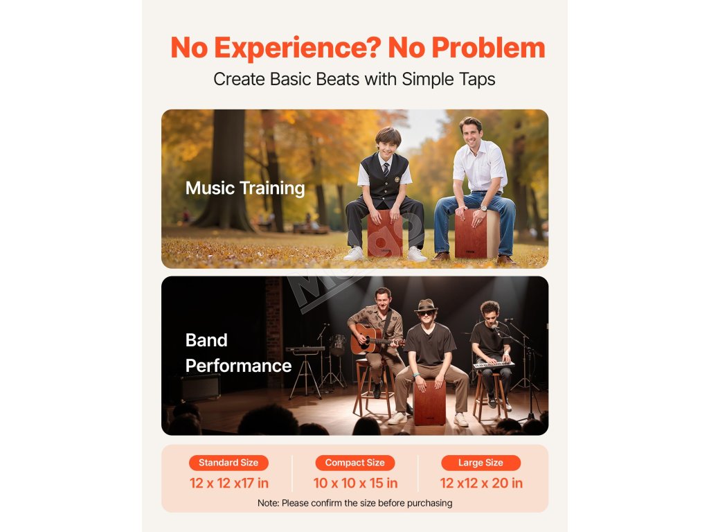 Náš bubon cajon je skonštruovaný tak, aby sa prispôsobil vašim rukám, a preto poskytuje bezproblémové ovládanie a prirodzený pocit pri každom údere