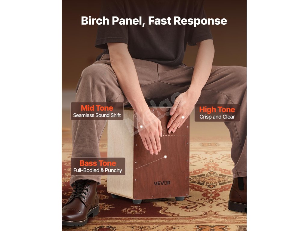 Náš bubon cajon je skonštruovaný tak, aby sa prispôsobil vašim rukám, a preto poskytuje bezproblémové ovládanie a prirodzený pocit pri každom údere
