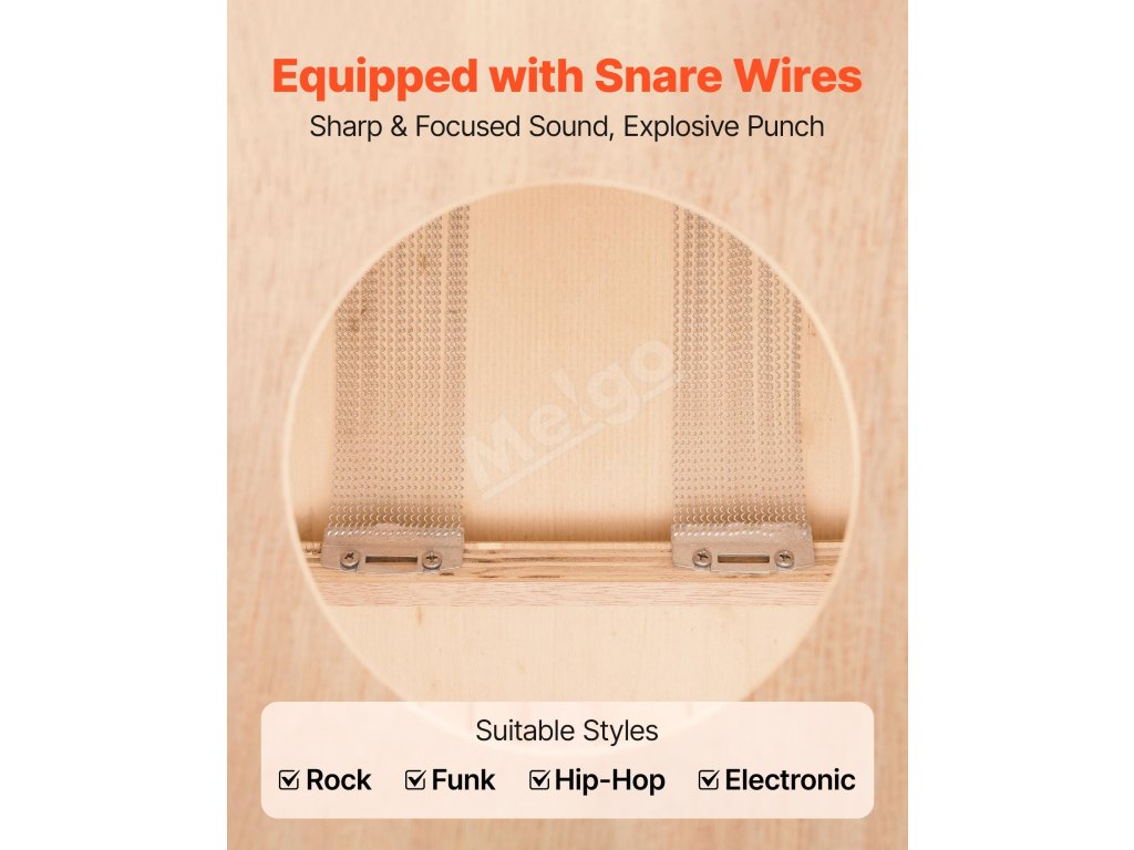 Či už ste nováčik alebo skúsený, tento box bubon vám poskytne nástroje, ktoré vám umožnia užívať si hudbu ihneď. Brezový povrch je veľmi citlivý a snare drôty zvýraznia každý úder silou a jasnosťou.