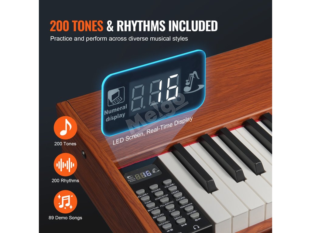 Toto 88-klávesové plne zaťažené digitálne piano je vybavené režimom dvojitej klaviatúry pre profesionálnych hráčov a dokáže zahrať 200 tónov. Vďaka zabudovaným duálnym reproduktorom, podpore prenosu MIDI a Bluetooth, konektorom pre zvuk a mikrofón si môžete pripojiť slúchadlá pre pohlcujúce učenie a vstúpiť do sveta hudby!