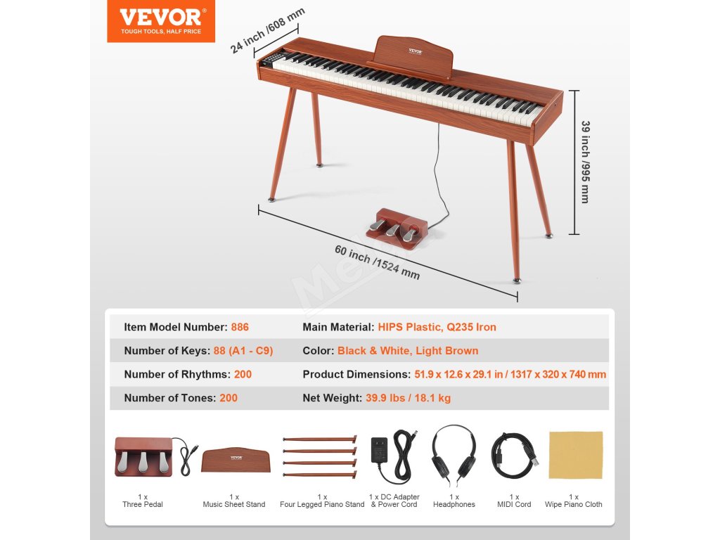 VEVOR 88-klávesová prenosná plne zaťažená klaviatúra