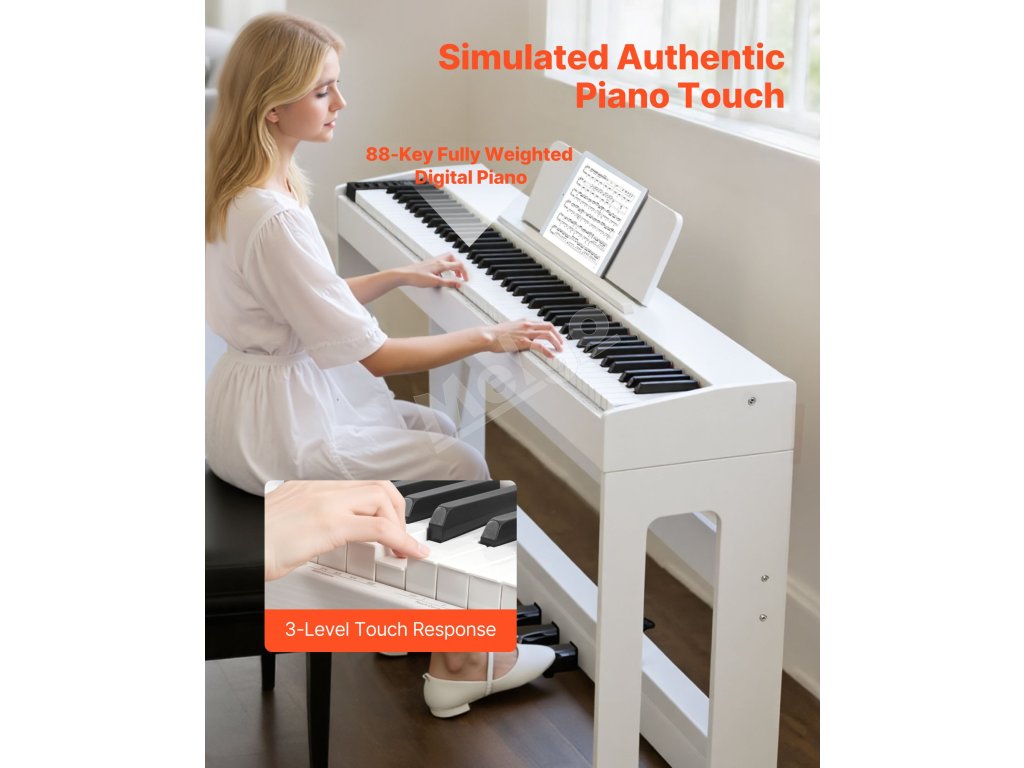 Digitálne piano 88 klávesov plne vážené, 280 tónov, s trojpákou, biele