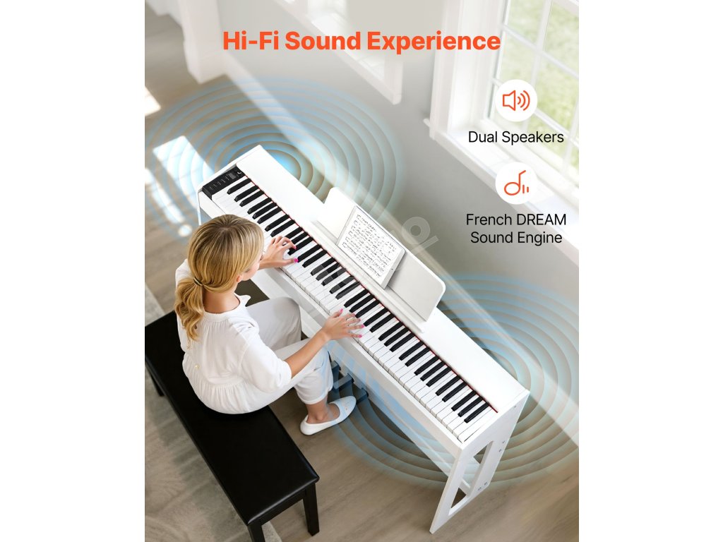 Pedál sustain predlžuje trvanie noty, vďaka čomu je hranie legata bezproblémové. Vďaka dvom reproduktorom, dvojtónovému nastaveniu a francúzskemu zvukovému motoru DREAM poskytuje toto elektrické piano 88 klávesov weighted bohatý, autentický zvuk, ktorý spĺňa potreby každého hráča.