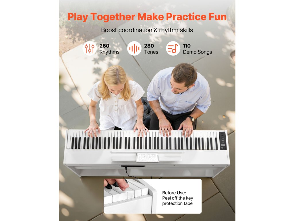 V porovnaní s akustickým klavírom je naša 88-klávesová vážená klaviatúra ľahšia a ľahšie sa prenáša, čo vám umožní umiestniť ju kamkoľvek budete chcieť. Môžete tiež hrať spoločne s priateľmi alebo blízkymi a ľahko si užívať čas strávený pri hudbe.