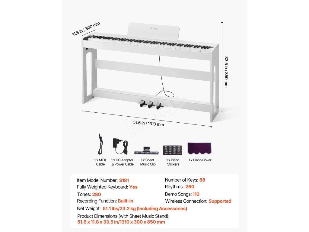 Tento 88-klávesový klavír s váženou klaviatúrou je ideálny na prechod z cvičenia na skutočné piano. Je vybavené duálnym režimom klaviatúry a 280 bohatými tónmi, má zabudované duálne reproduktory, podporu MIDI a Bluetooth, ako aj konektory na zvuk, mikrofón a slúchadlá. Vykročte s dôverou do sveta hudby!
