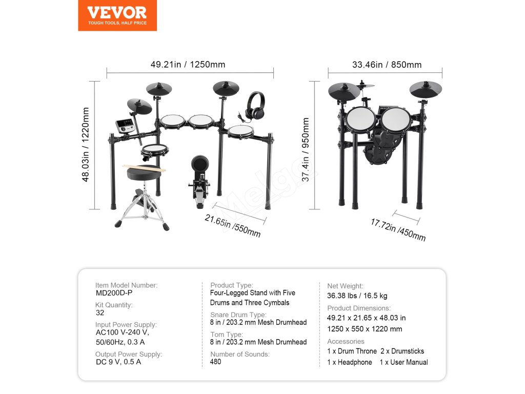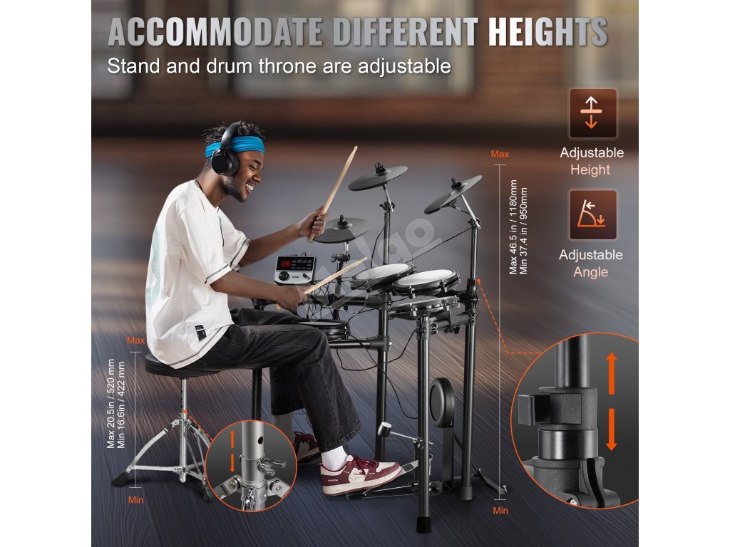 Naša elektrická bicia súprava má viac ako 480 zvukov pre rôzne štýly. Vďaka podpore MIDI je nahrávanie a skladanie hračkou. Budete mať k dispozícii všetko, čo potrebujete, s dvojspúšťovým snare a crash činelom s tlmičom. Navyše robustný nastaviteľný stojan sa hodí pre hráčov všetkých úrovní.