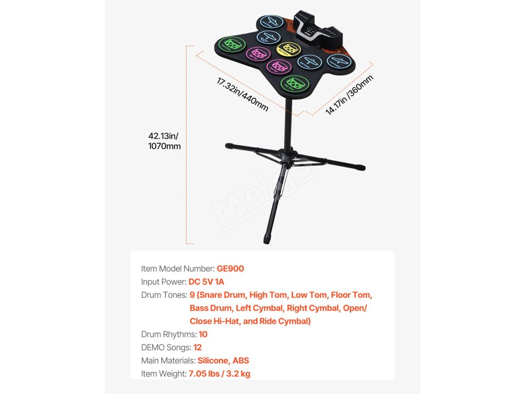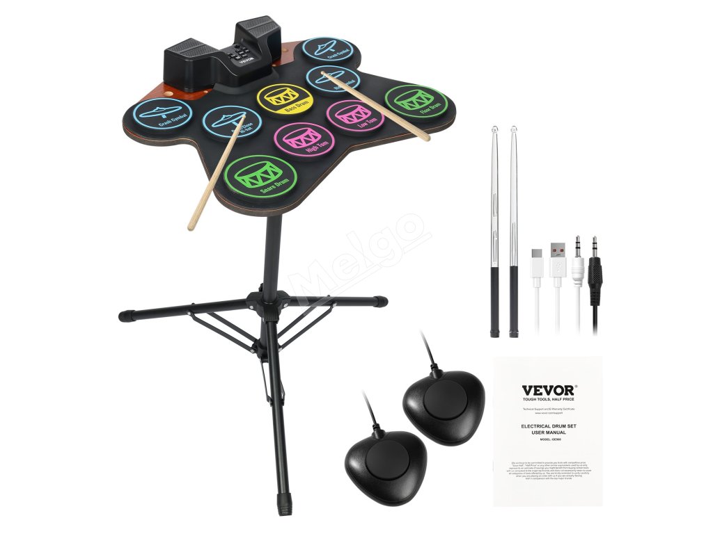 Elektronická bubnová súprava 9 padov, rolovacia podložka, s pedálmi