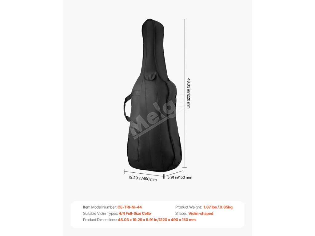 Futráľ na violončelo 4/4, nepremokavý nylon, ľahký, s popruhmi