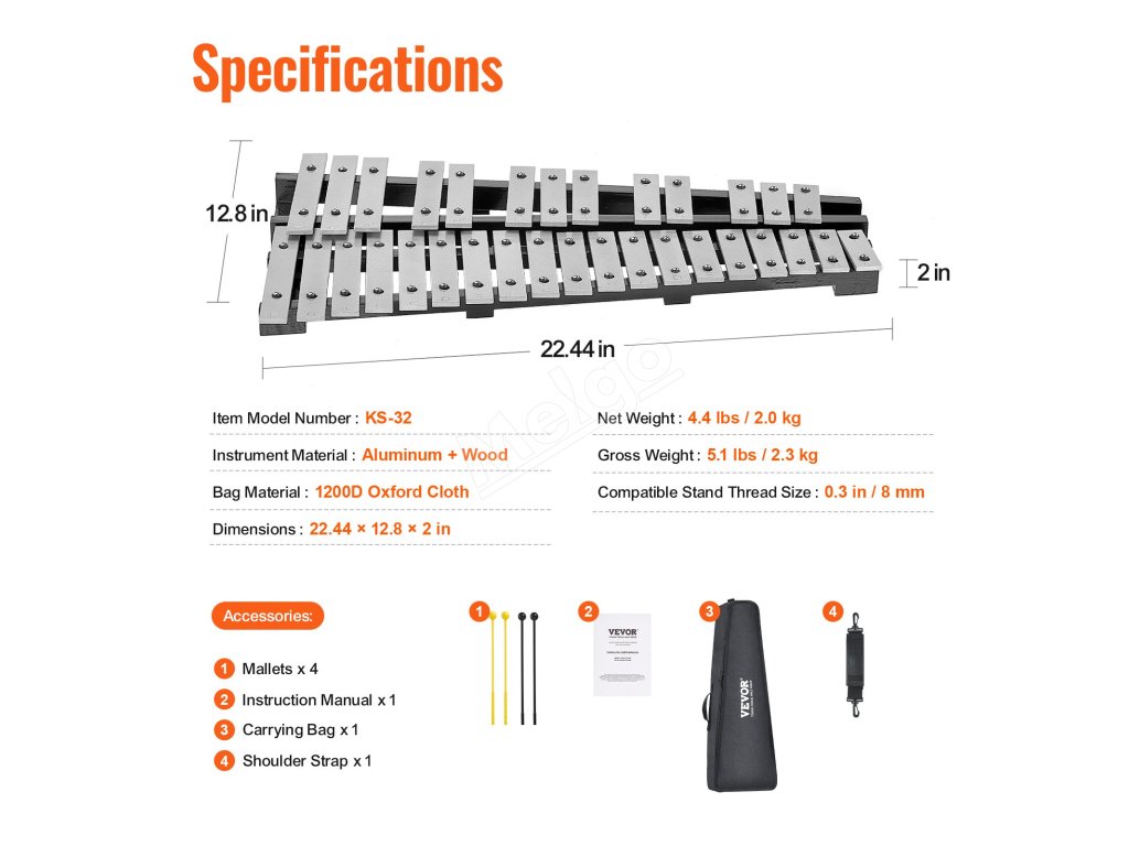 VEVOR 32 nôt Zvonkohra Xylofón Súprava - profesionálna sada bicích nástrojov