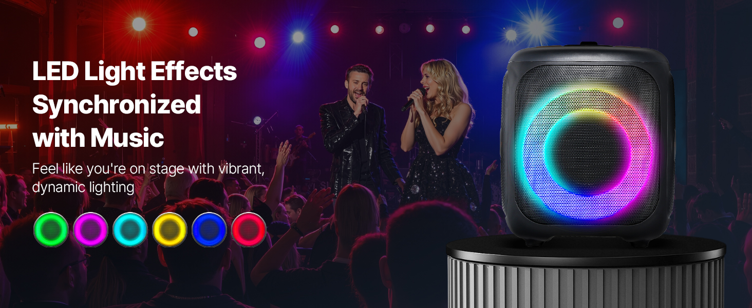 Vstavaná svetelná šou LED vytvára ideálnu atmosféru a synchronizuje sa s rytmom hudby. Sledujte, ako svetlá tancujú do rytmu, čím sa každá skladba zmení na živé a energické vystúpenie s naším karaoke zariadením.